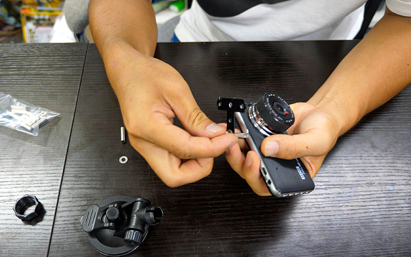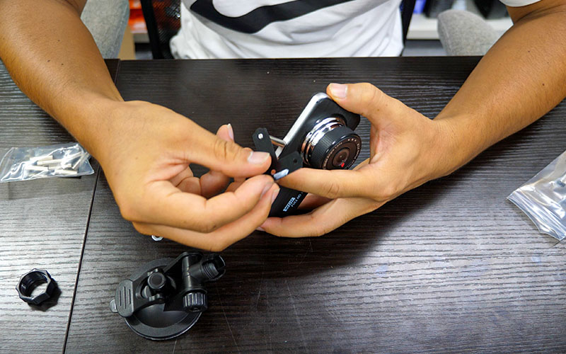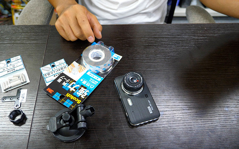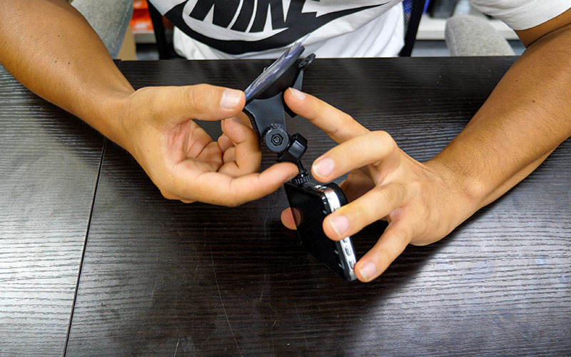 まずは吸盤ブラケットをドライブレコーダー本体に付けます。ネジで留めるだけ。