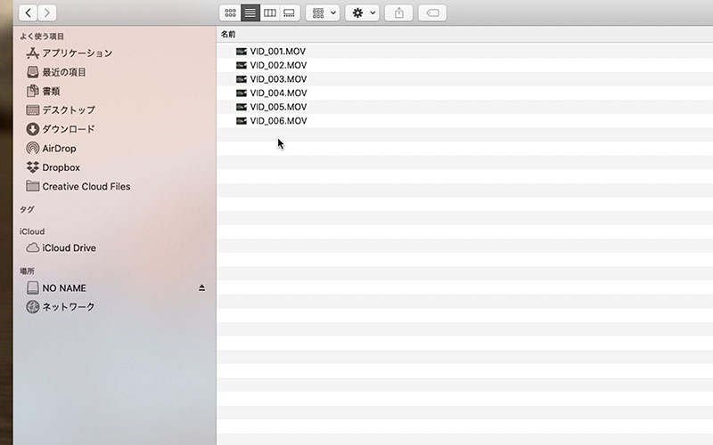 先ほど1296p、1080p、720pで1分ちょい撮影したのでファイルは6個です。動画の詳細を確認します。