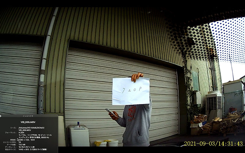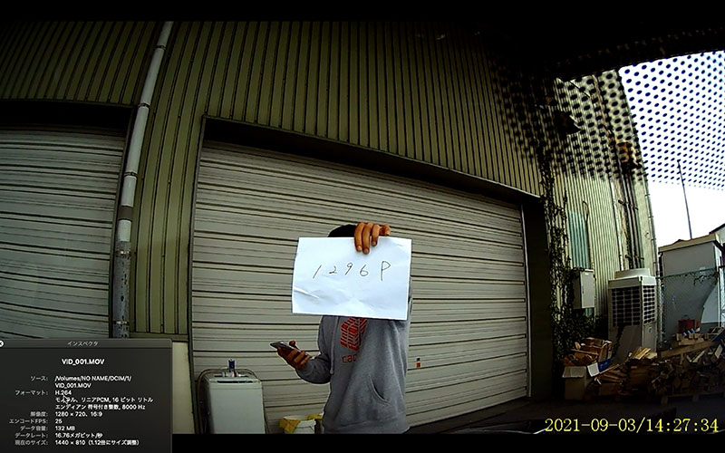 なので1296p、1080p、720pで1分ちょい撮影して、動画の詳細を確認したいと思います。