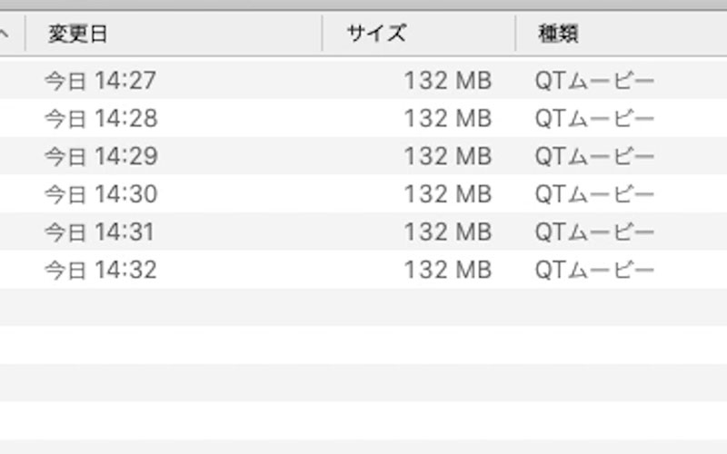 ループ録画を1分に設定しているので、1分経ったら自動的にファイルが切り替わります。そうなると動画の長さは全て同じなので、容量は絶対に変わるはず。
