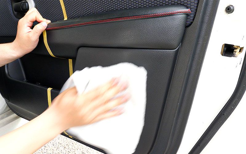 ①内側のクリーナーでコーティングする領域を綺麗にして乾燥させる