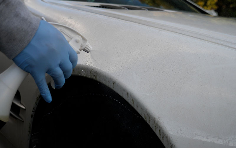 落ち切らなかったところにクリーナーを吹きかけます。