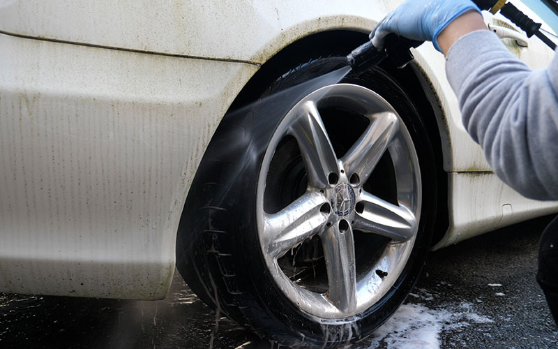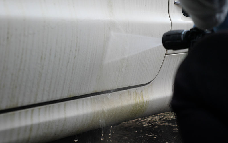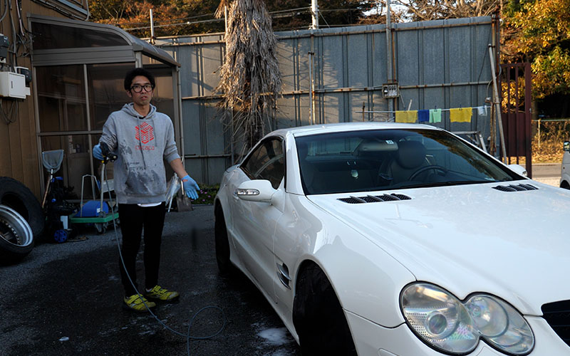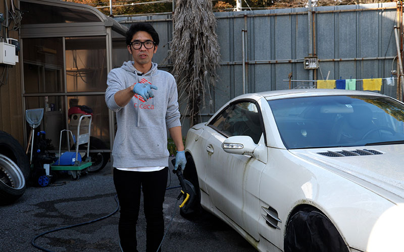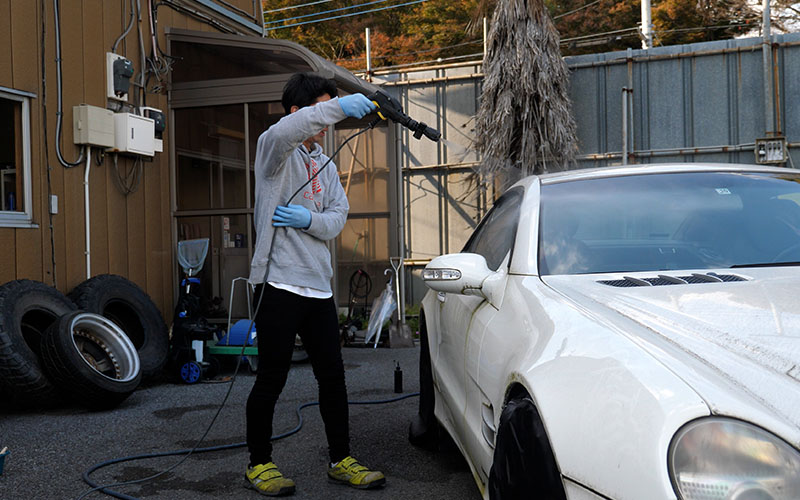 しのピー:続いてボディの汚れを高圧洗浄機で落としていきます。