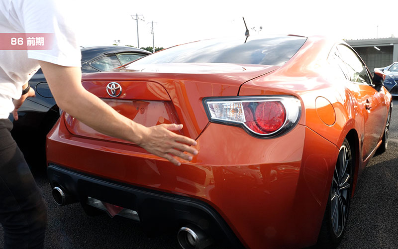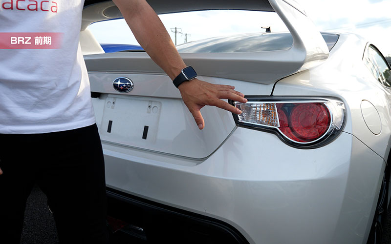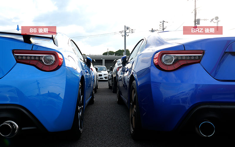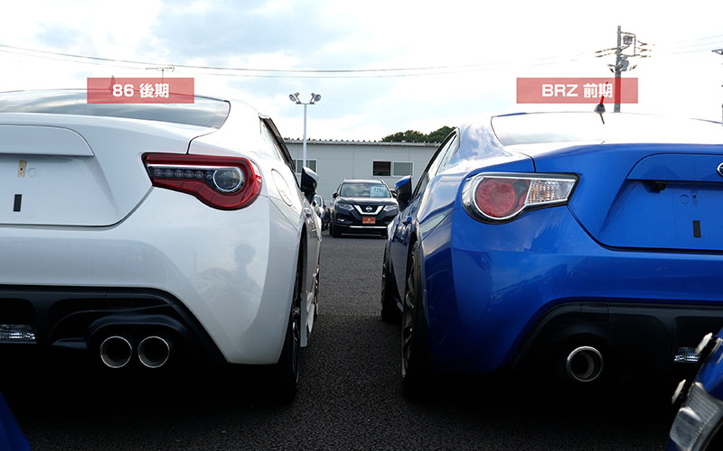 86前期型とBRZ前期型です。プレスラインが一直線に入っています。テールは前期型なので隙間はもちろんありませんね。