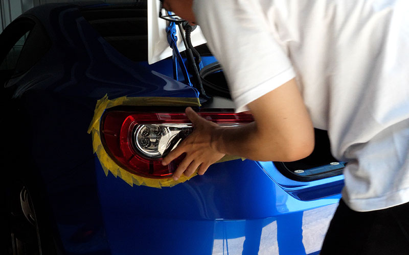 ボディを傷つける可能性があるのでマスキングテープが養生テープを貼りました。この状態でテールランプを取ります。