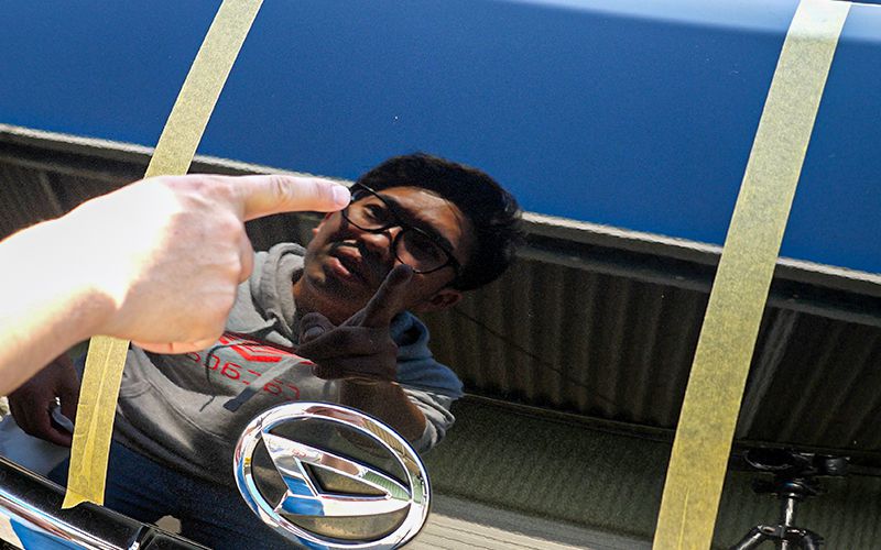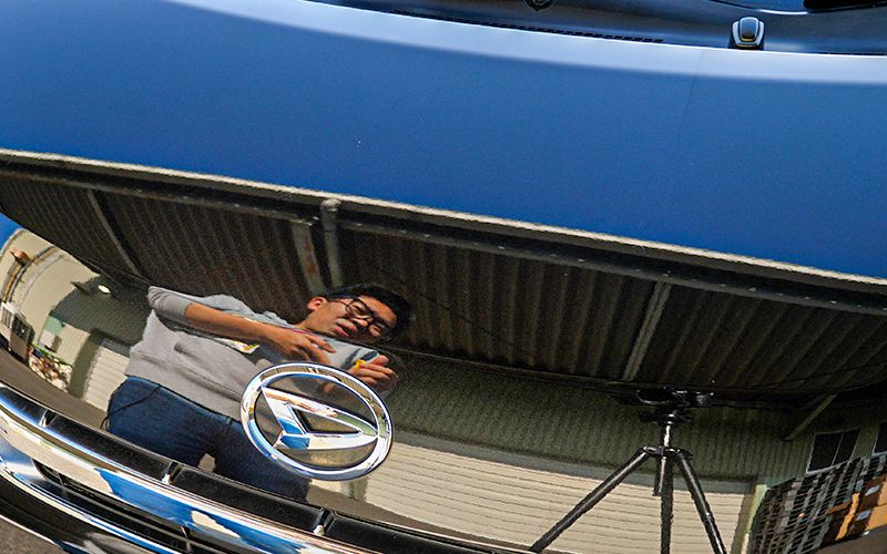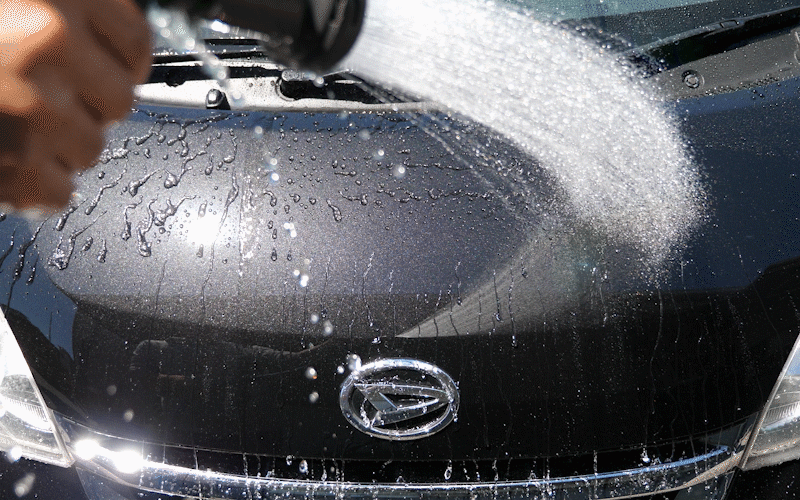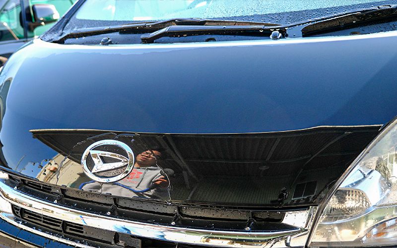 実は昨日雨が降り、車は既に一度水を浴びています。今は、雨に濡れたために汚れが目立つ状態になっていますね。