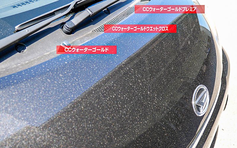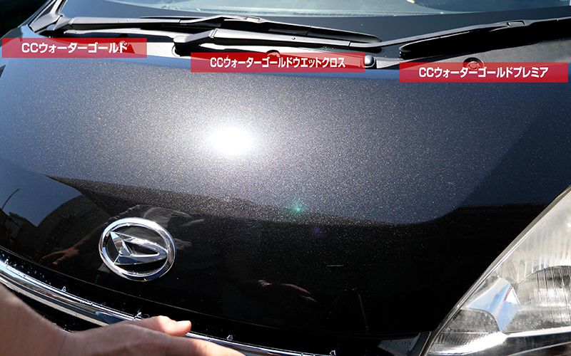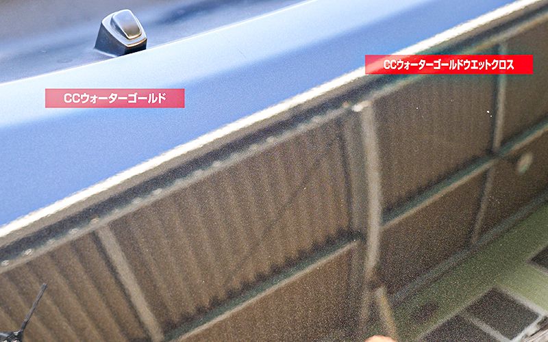 ここに『CCウォーターゴールド』と『CCウォーターウエットクロス』、ついでに『CCウォーターゴールドプレミア』も同時に施工して比較していきたいと思います。