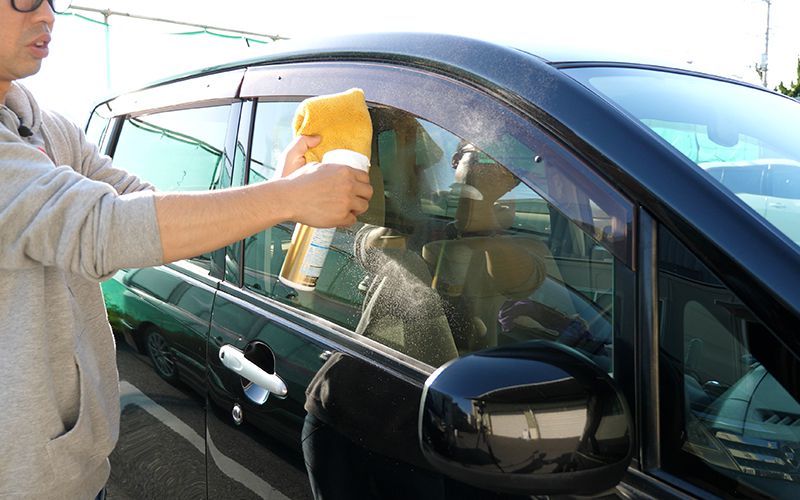 フロントガラス以外のガラスであれば使用できるという事だったので、ガラスもボディもまとめて施工してしまいます。ちなみに洗車先に行ってしまいました。