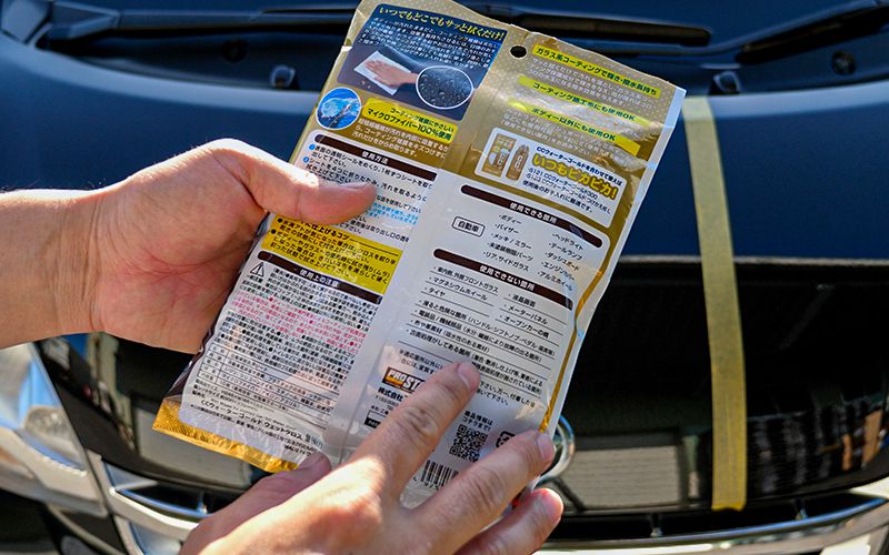 また親切に使えない所もしっかり記載されていて、「車内側・外側フロントガラス・液晶画面・マグネシウムホイール・メーターパネル・タイヤ・オープンカーの幌・滑ると危ない所・電装品・布や皮素材・表面処理が施されている箇所」には使えませんということです。
