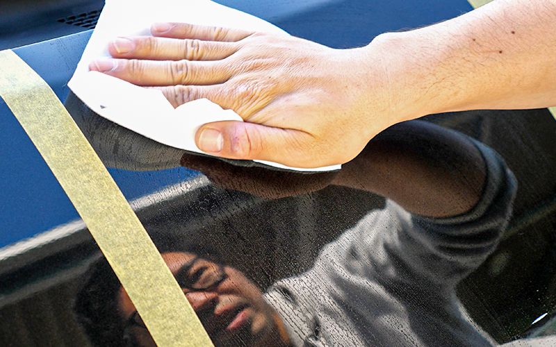 最後、真ん中の面に『CCウォーターゴールドウエットクロス』を施工します。
