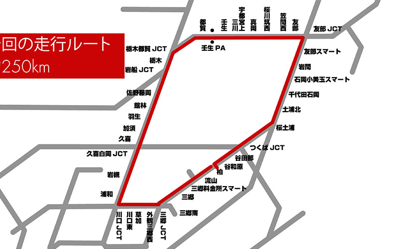道のりはいつも通り、柏インターから北上して北関東道、壬生パーキングで休憩し、そこから東北道。外環自動車道、常磐道で柏インターです。