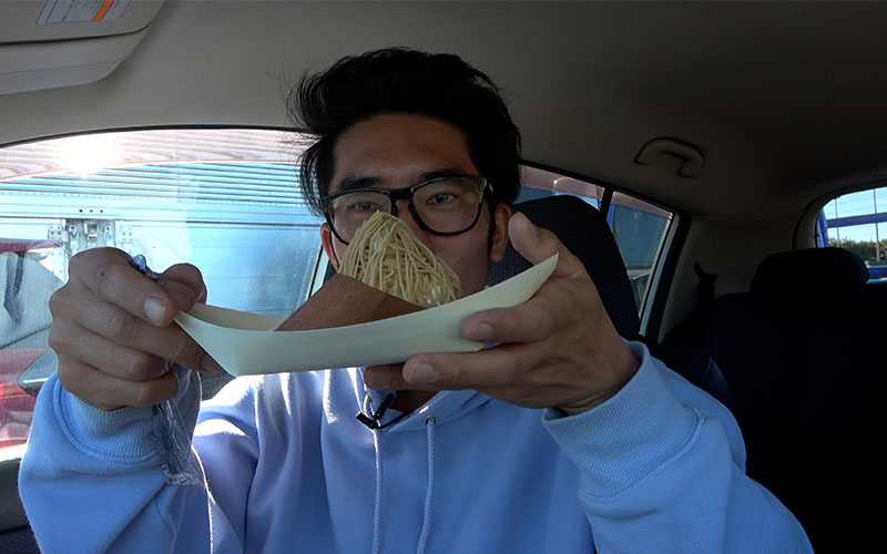 しのピー:はい。食べ物ではなく、ヒッチハイクしている人を見つけてしまいました。東京まで行くんですよね?
