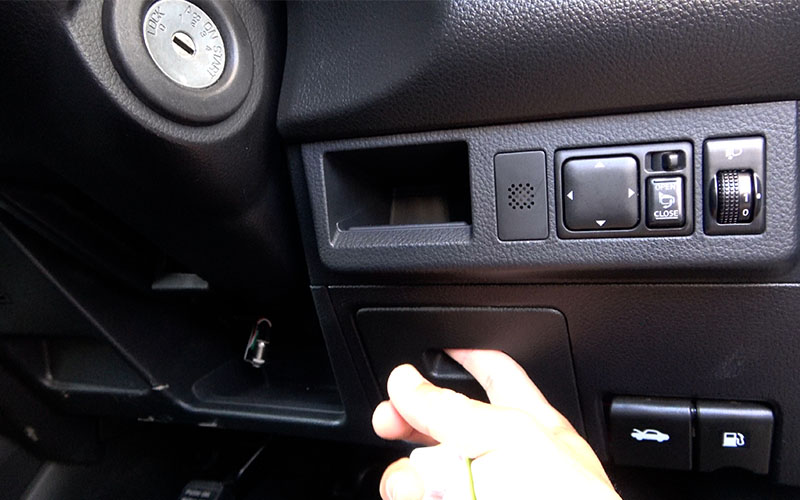 この車は運転席付近のカバーを外すとOBD2があります。