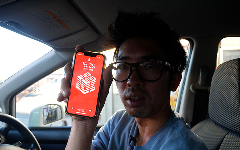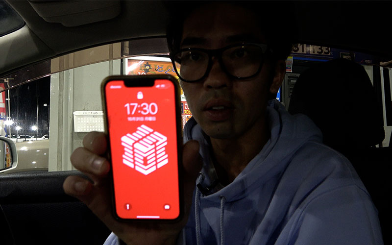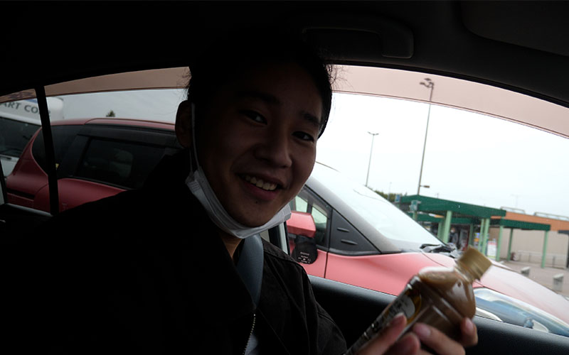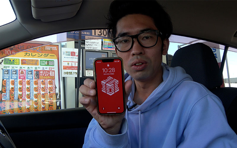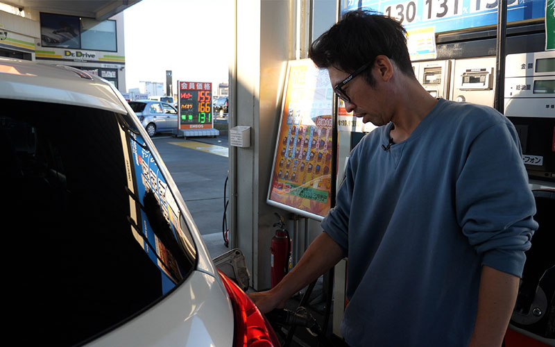 ガソリンスタンドに到着しました。Canataくんが撮影してくれています。