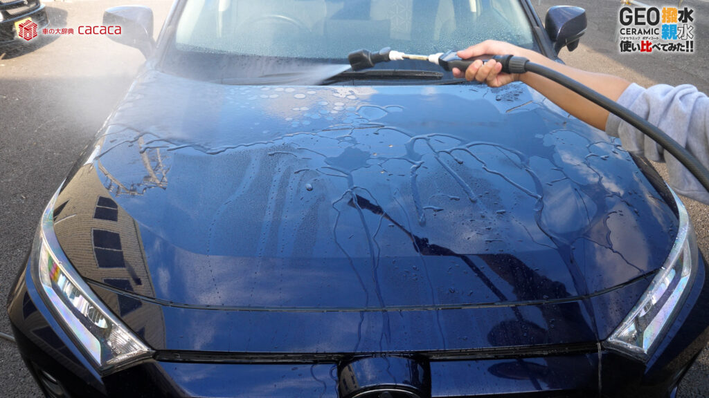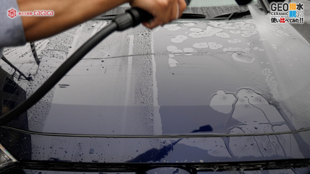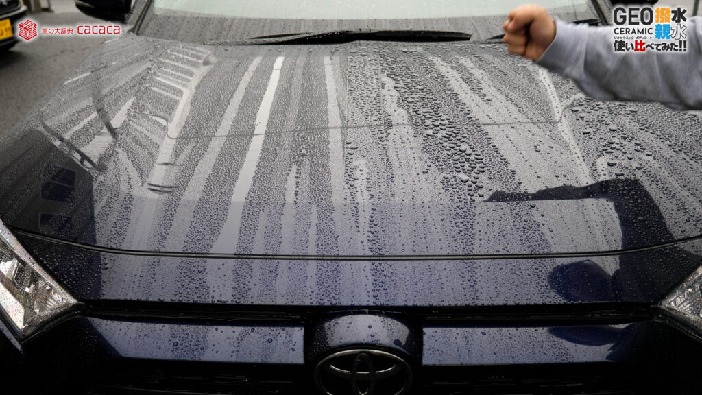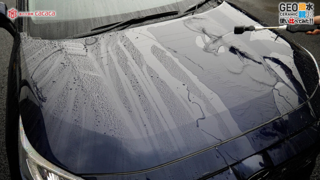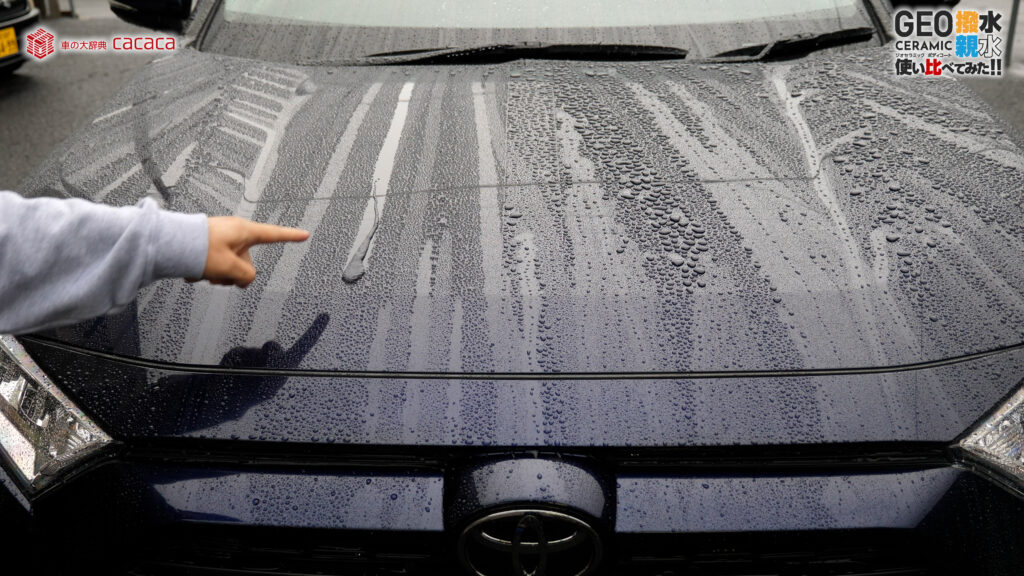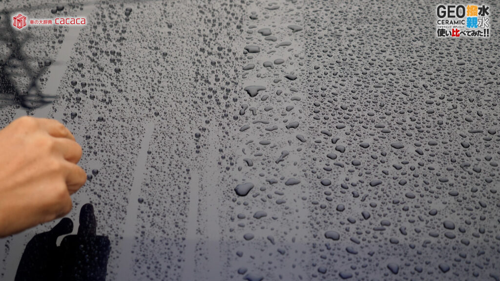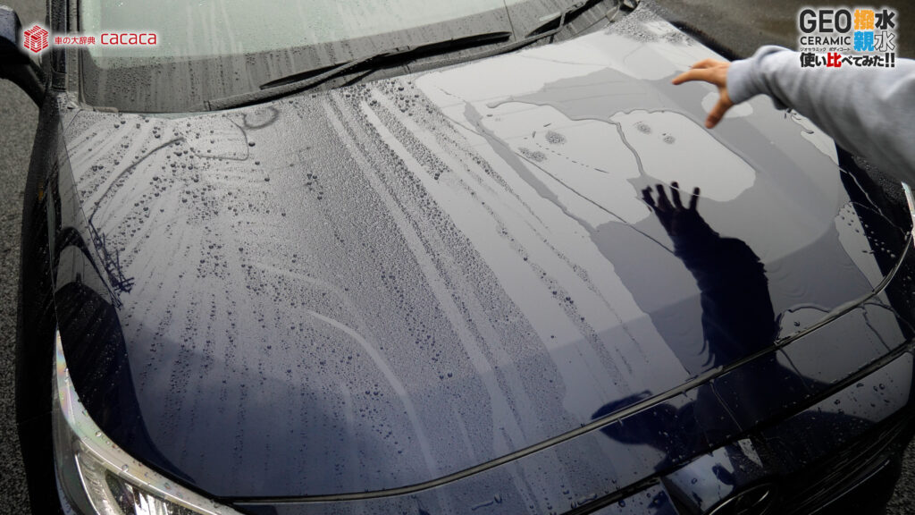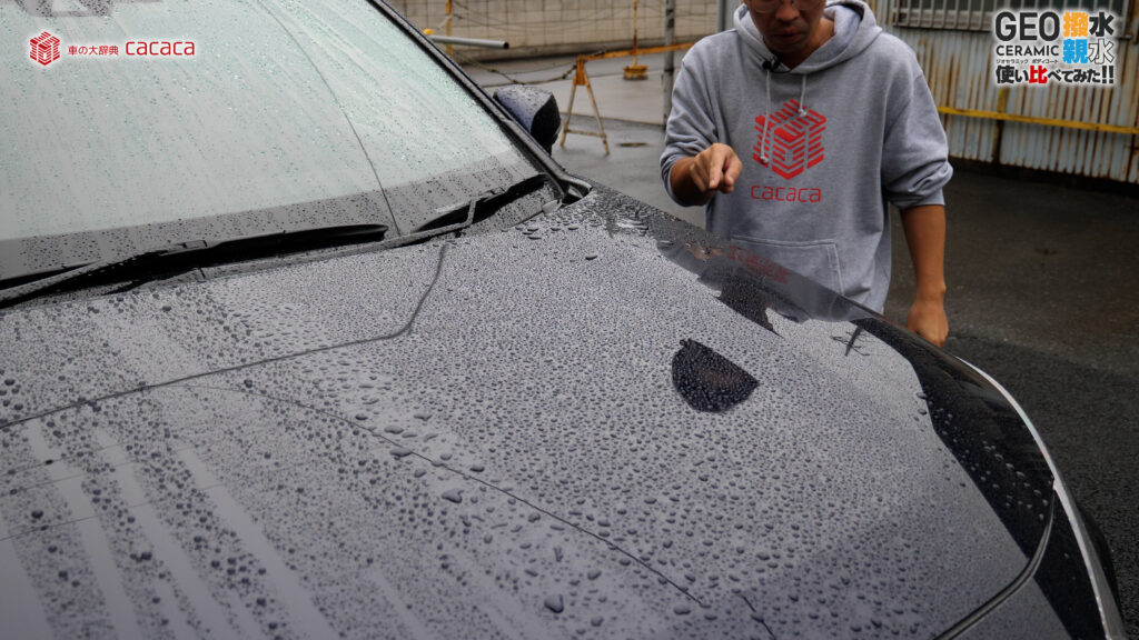 いつもどっちの方がって言われた時に、世間ではレンズ効果って言って、水滴が撥水の方が丸っこいので、日差しを浴びた時に塗装面が焼けやすいとか言われてますね。