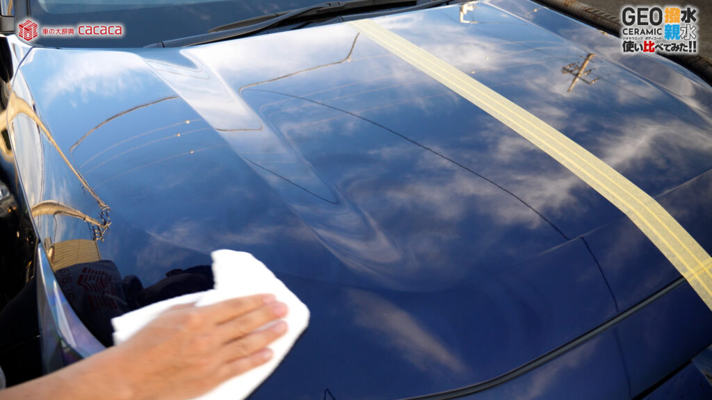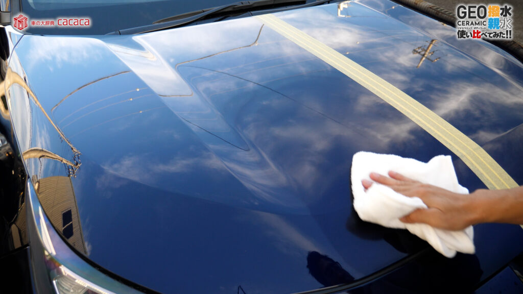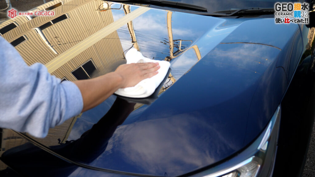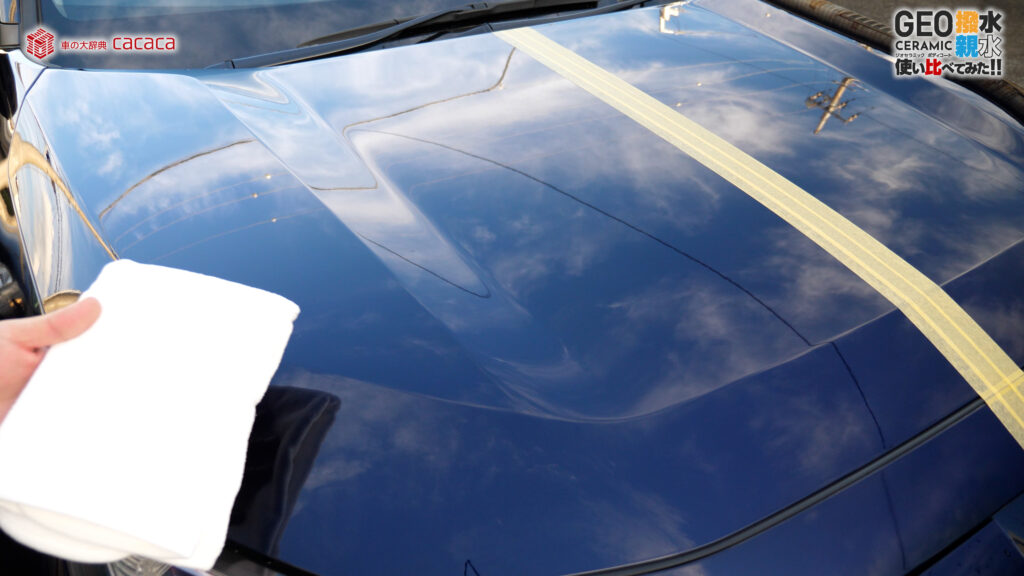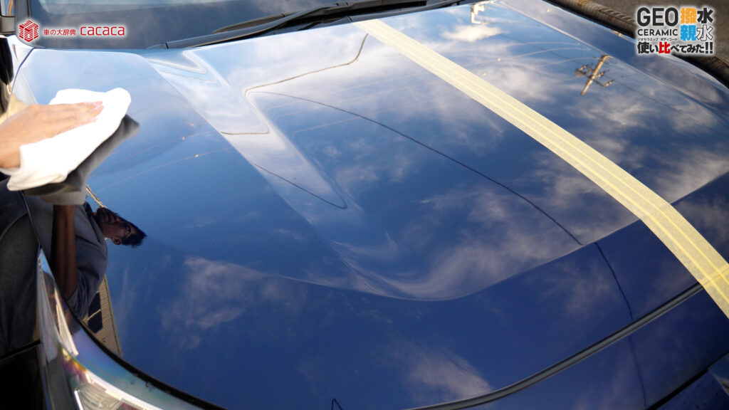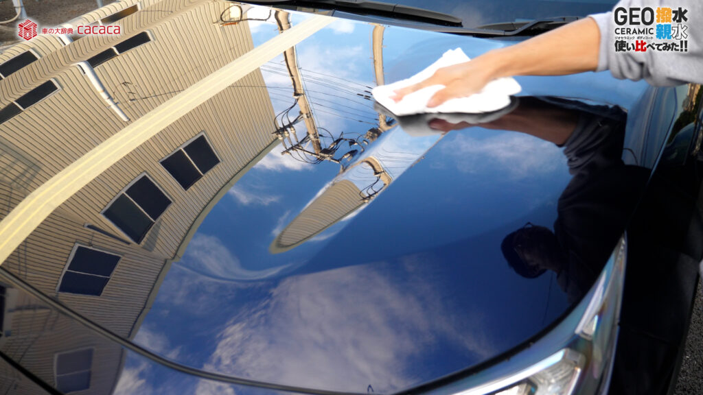 拭き上げた感じもすごい軽くて、そのかわりツヤ感はやっぱり撥水タイプよりちょっとないのかなといった感じですね。