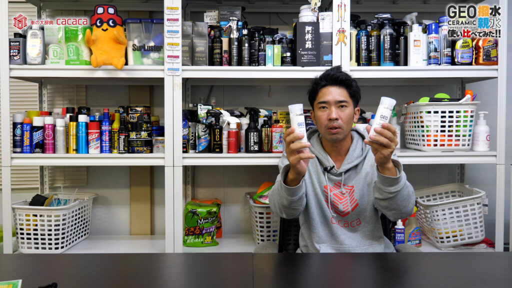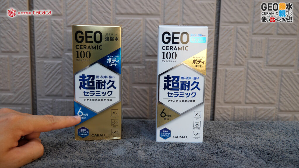 今回はこちら、カーオールのGEOセラミックボディコートの撥水タイプと親水タイプ この2種類を使ってみました。