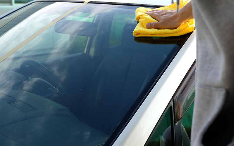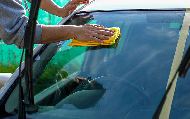 ①クリーナーでガラスを綺麗にした後 本製品を円を描くようにして塗り込む