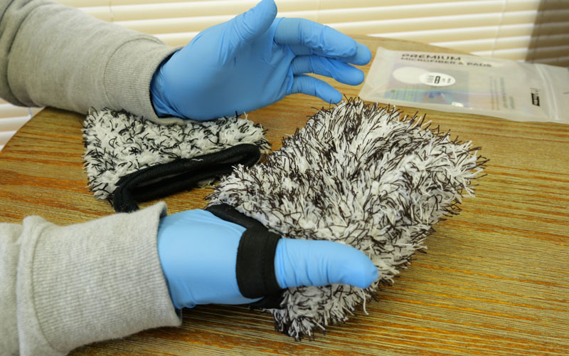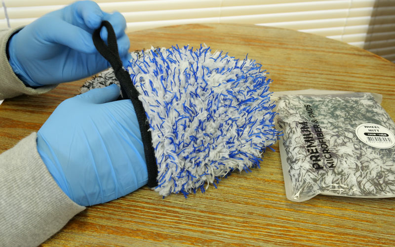今回はちょっと前にこういった商品を紹介しました。ホイールを洗う用のミットですね。通常ボディを洗うようなミットっていうのは手全体が入る、もっと大きいサイズのミットなんですけども、これは小さいサイズミットです。
