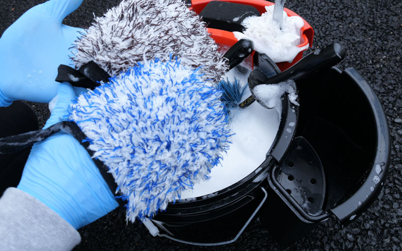 実際にホイールを洗っていくのです、ホイールミットはホイールの表面って言ったらいいのかな? ディスク面を洗うのに向いています。