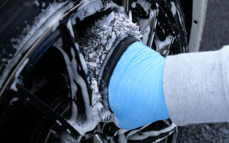 ホイールは奥より手前の方を洗う人が多いと思います。スポンジで洗っている人もいると思いますが、スポンジも数百円するじゃないですか?