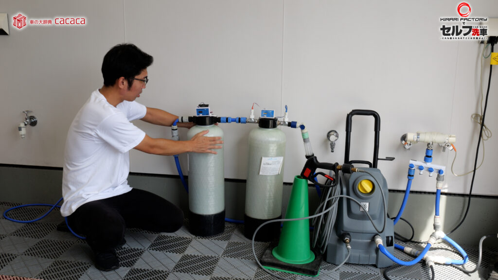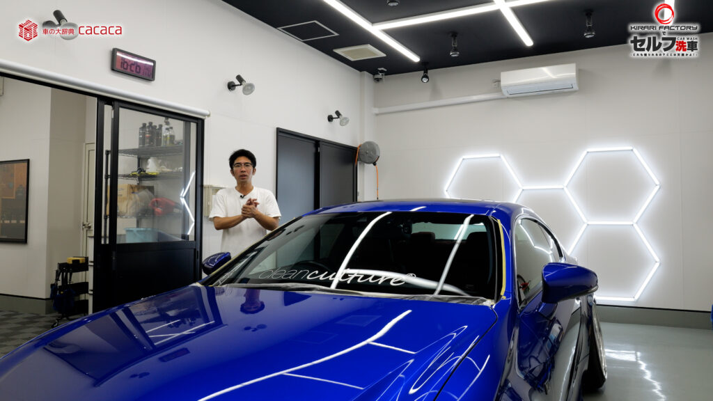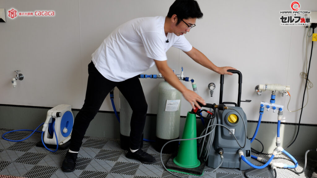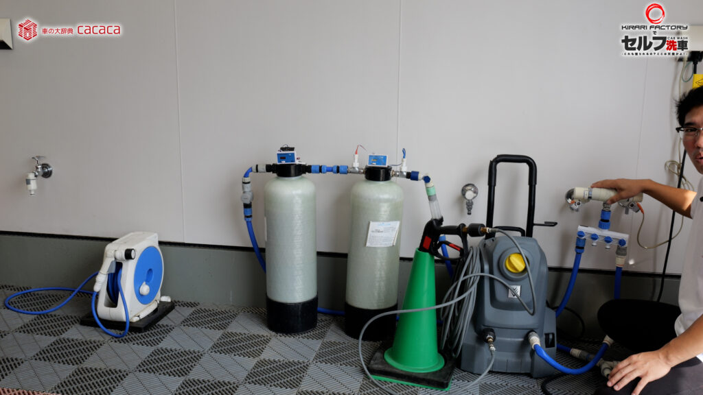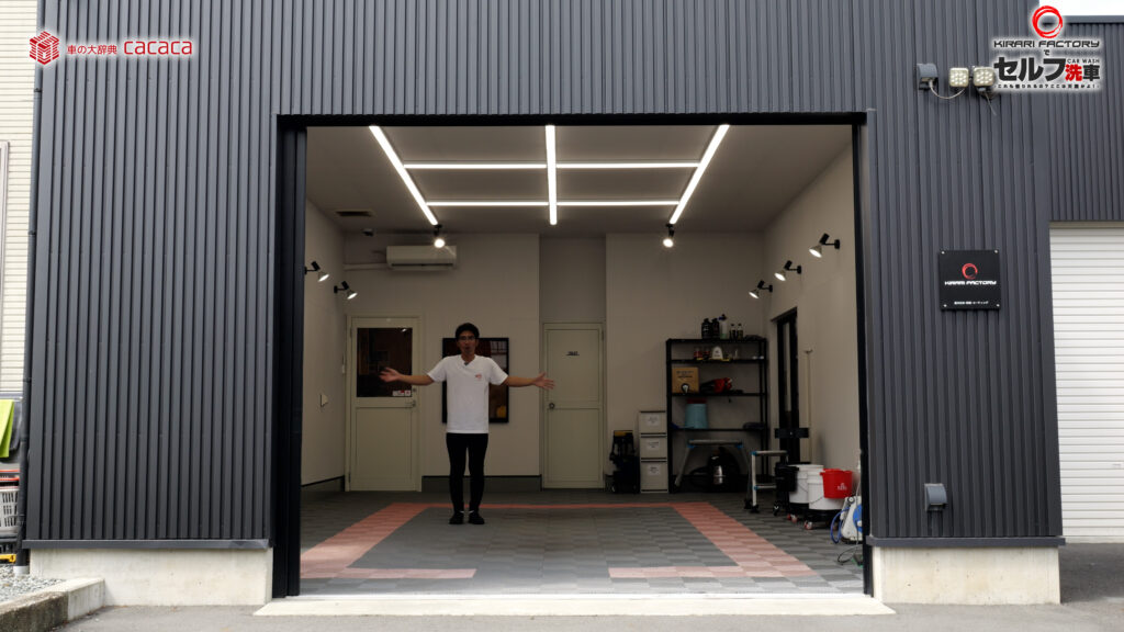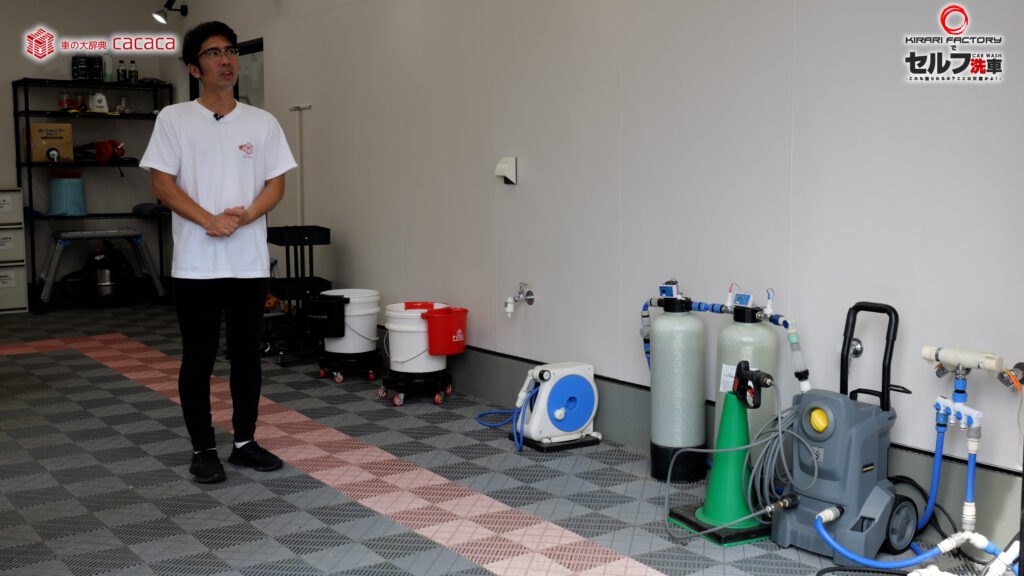 このキラリファクトリーさんは、メインがセルフ洗車場となっていて、色んな高圧洗浄機だったり純水器とかを利用できるという屋内洗車場ですね。