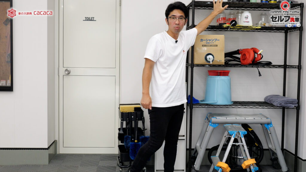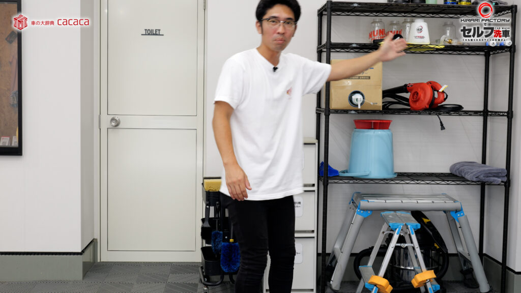 この辺も使うことができるみたいなので、実際に 今から設備をお見せしながら洗車の方をしていこうと思います。