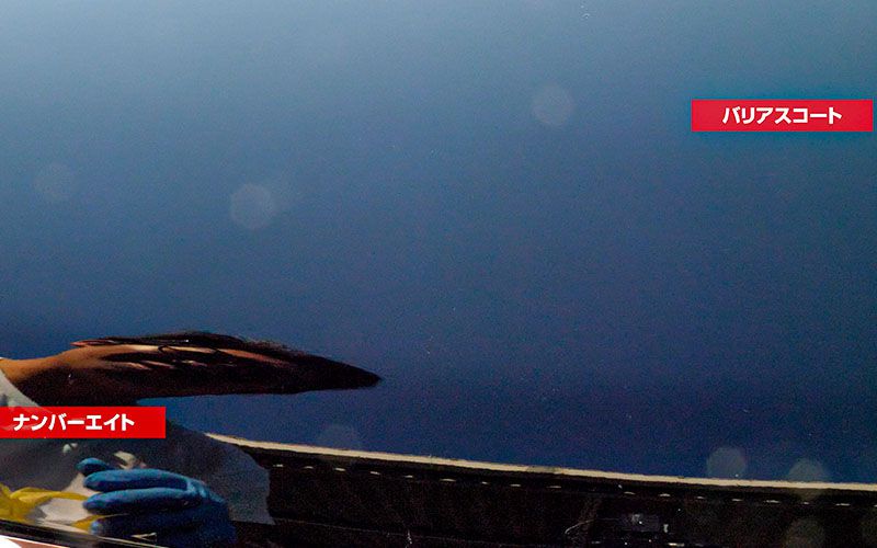 本当はNO.8と表記が似ている『ペルシード』を施工しようと思いましたが、親水タイプしか持っておらず、撥水の比較がわかりづらくなると思ったので、『バリアスコート』にしました。