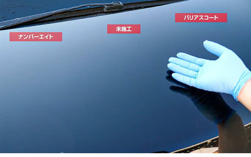 『NO.8』は疎水タイプですね。『バリアスコート』は撥水タイプなので水弾きが全く違います。