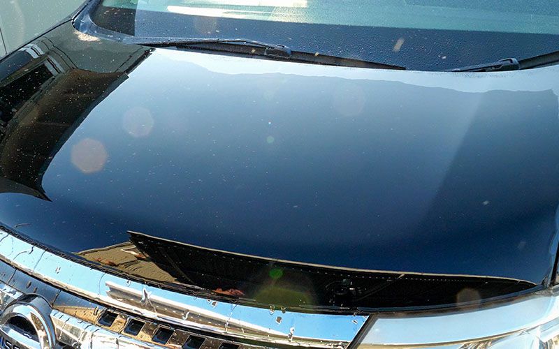 こちらのボンネットに施工していきます。現状は未施工で親水状態です。