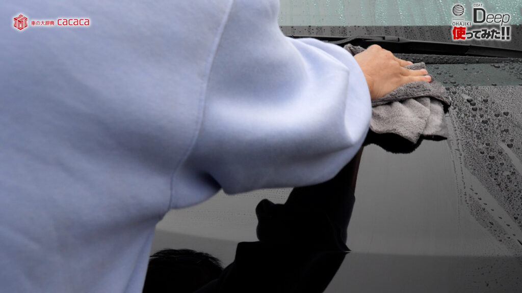 カーシャンプーを含まない濡れたタオル、こっちの方がやっぱり圧がかかりやすいので、コーティングを落としやすいのかな?