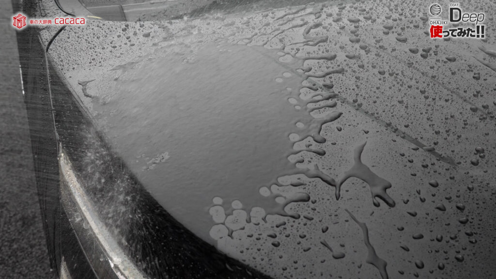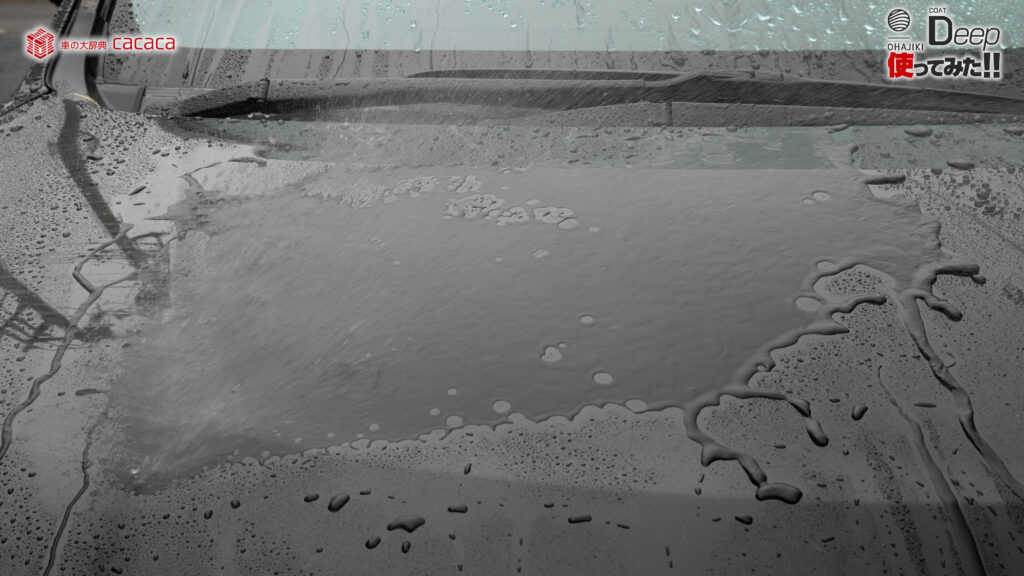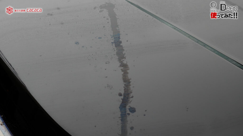 鳥のフンは酸だったり、あと酵素系でコーティングを腐食させたり、なんなら塗装も腐食させることがあるので、ここだけ綺麗に親水状態になってるんですよ。