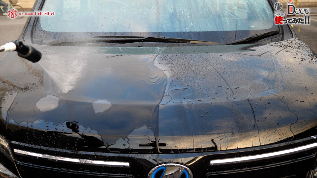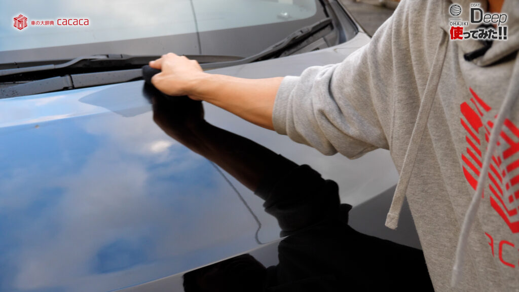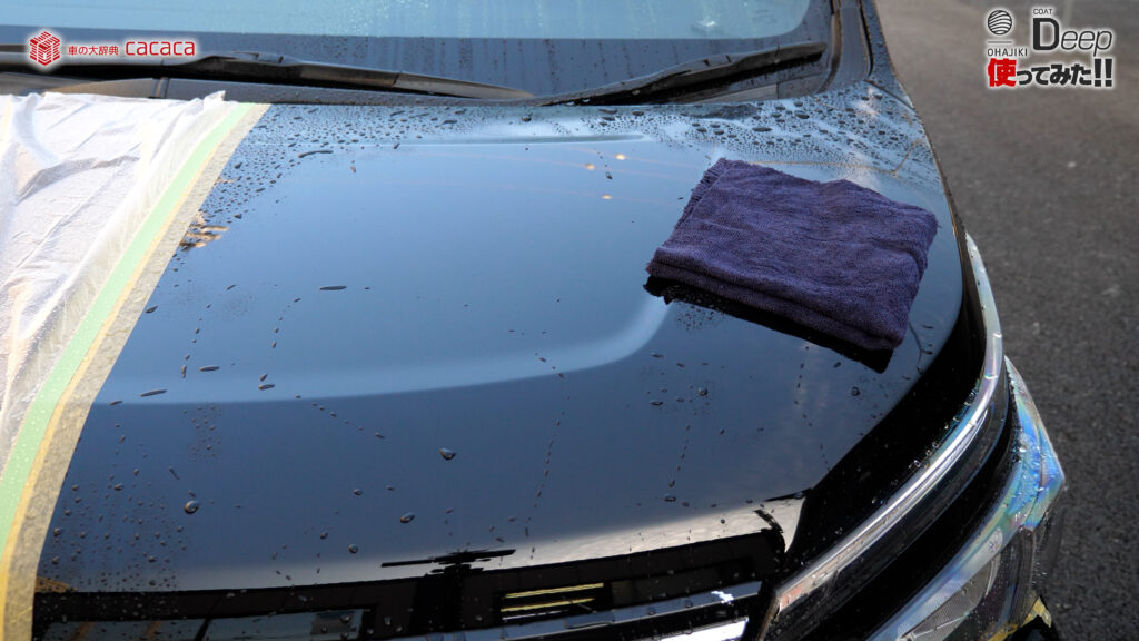 この車はついこの間コートGを施工した車で、現状ボンネットは……