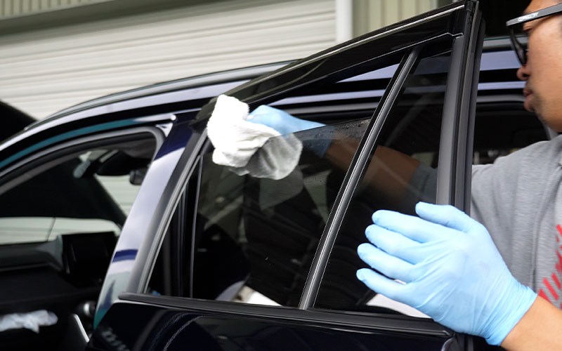 それで上の方の施工が終わったら一旦窓を閉めます。閉めたら次は下側です。