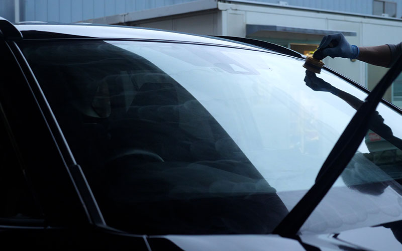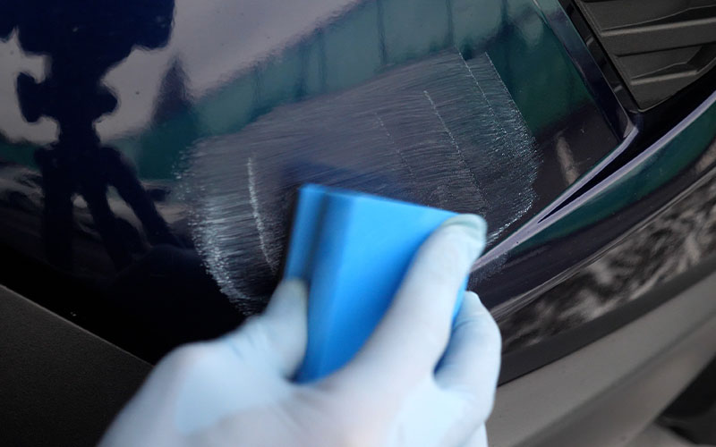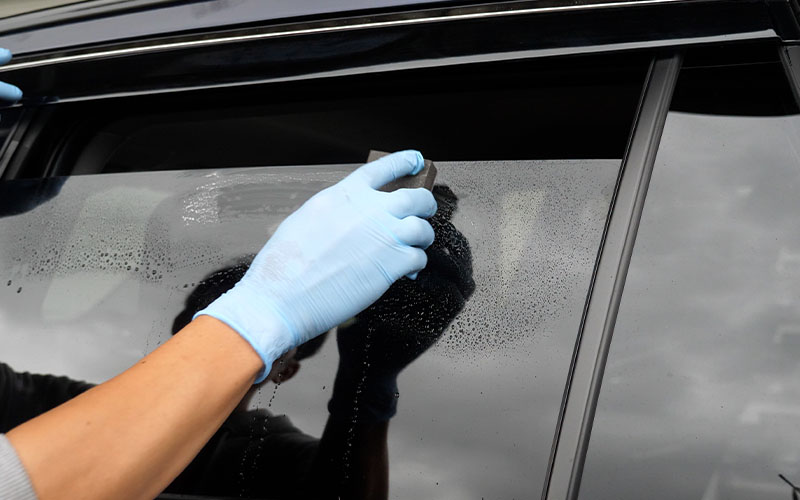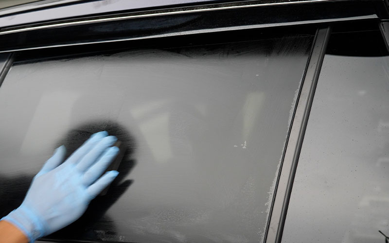 そうしたら、この水弾きがなくなるまで擦っていきます。ガラス面は適度に濡らしてあげてください。