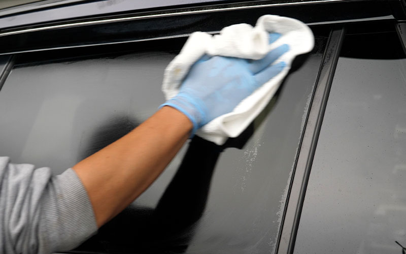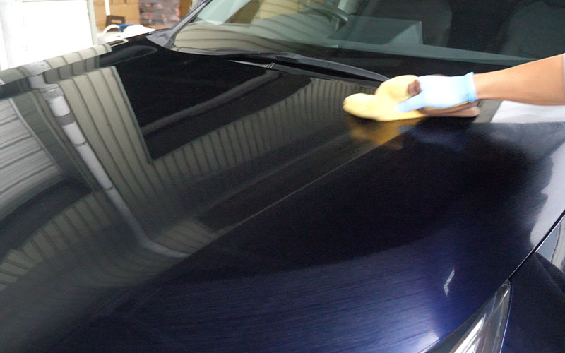 『CCウォーターゴールドプレミア』は専用のクロスを使って拭き上げていきます。