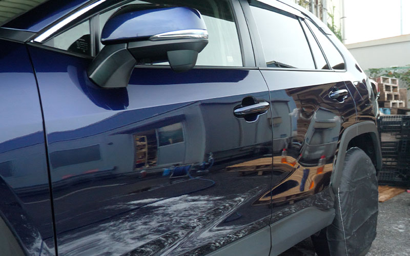 そうしたら、紺色のRAV4の外装を綺麗にしていきたいと思います。現状は結構汚れていたり洗車傷が目立ちます。砂埃とかもすごいです。