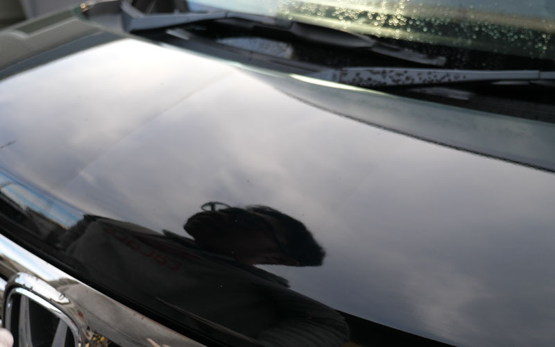 この車で試していこうと思います。ボンネットの現状ですが、コーティング剤は何も施工されていません。