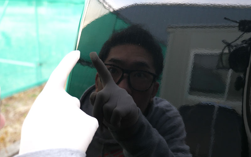 ちなみにこの砂埃が付着している面は『レインドロップ』を施工していた面になります。ここまでクッキリ境目があるので、『レインドロップ』を施工した面の方が砂埃が付きやすいということで間違いなさそうです。