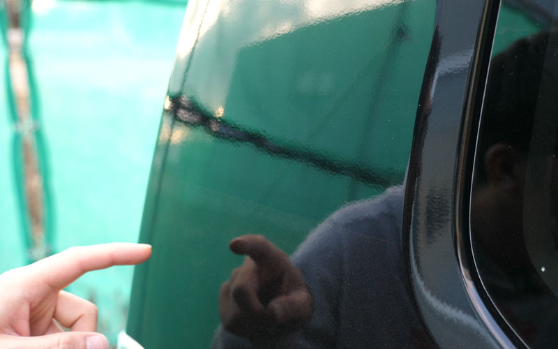 ハイハイハイハイ、画像でわかるのかな? でも違いはありますね! 運転席側を見るとツヤが出ているように見えるじゃないですか? これは違います。正面に立ってみます。