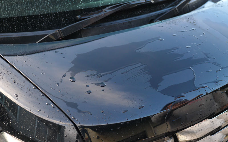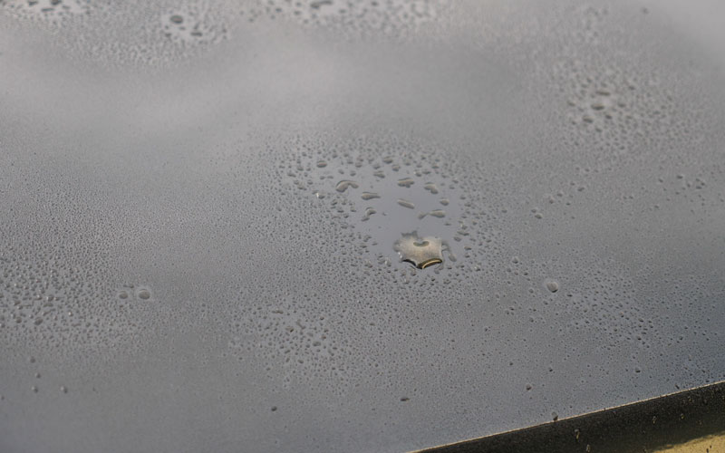 『レインドロップ』を施工した面は、しっかり水が弾いていて撥水しています。