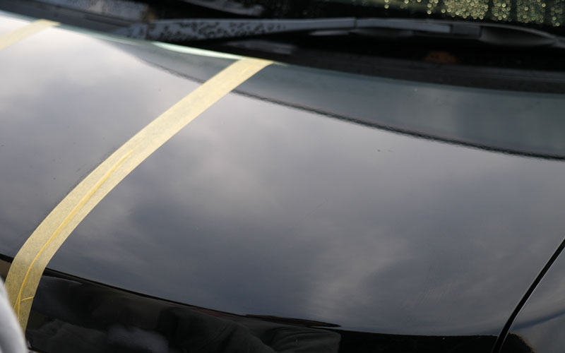 拭き上げてマスキングテープを剥がしました。ボンネットより綺麗に施工できたと思います。ですが、