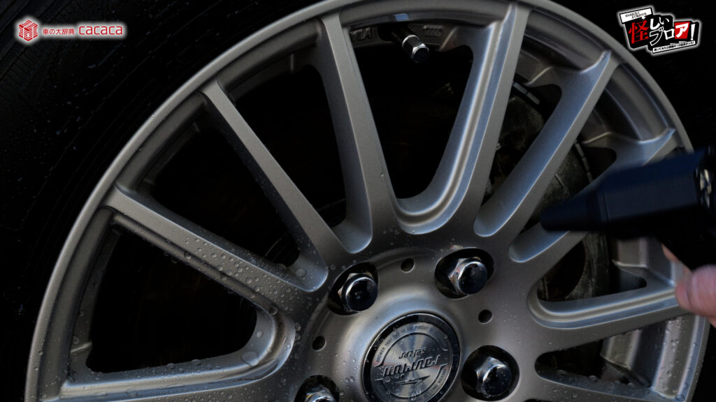 こうやって洗った後のホイールにもいいと思います。ある程度 撥水してた方が、水の飛びもいいので、こういう所にこんな感じで使うと…